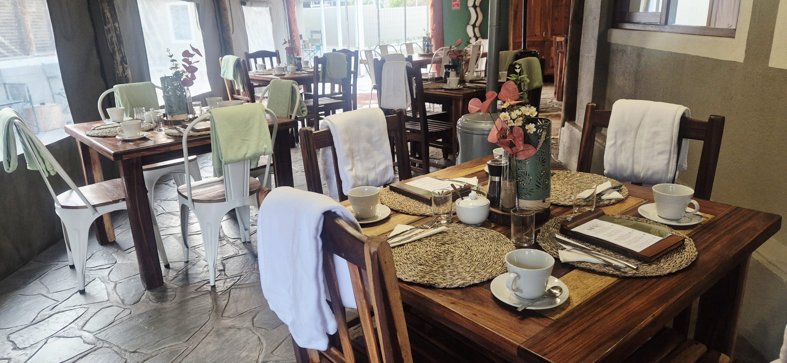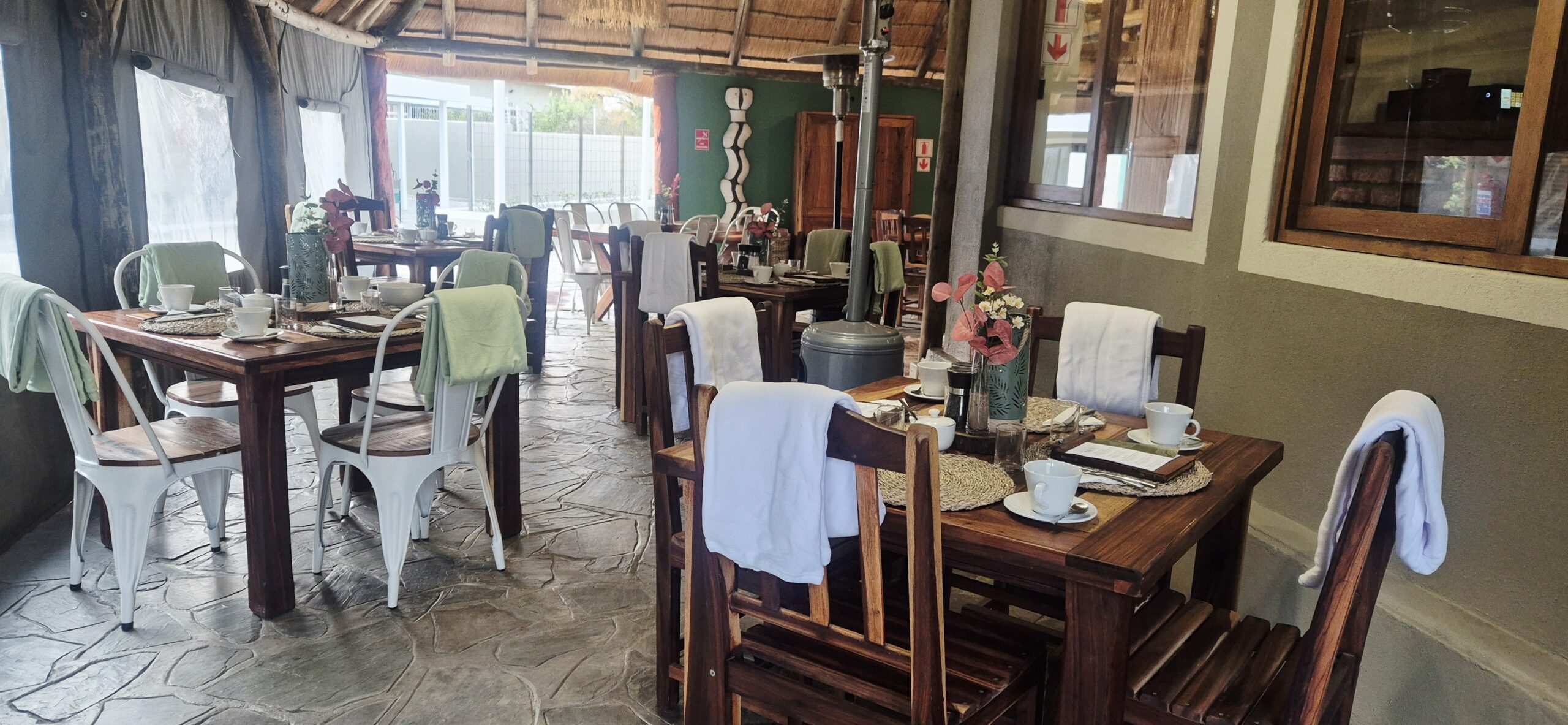 At Khaya Guesthouse, our restaurant welcomes guests and locals alike with freshly prepared breakfast, lunch, and dinner served daily. From hearty morning meals to relaxed evening dining, we focus on simple, delicious dishes in a warm and inviting setting. We are proud to stock and serve Two Beards Coffee, ensuring every cup is rich, smooth, and memorable.